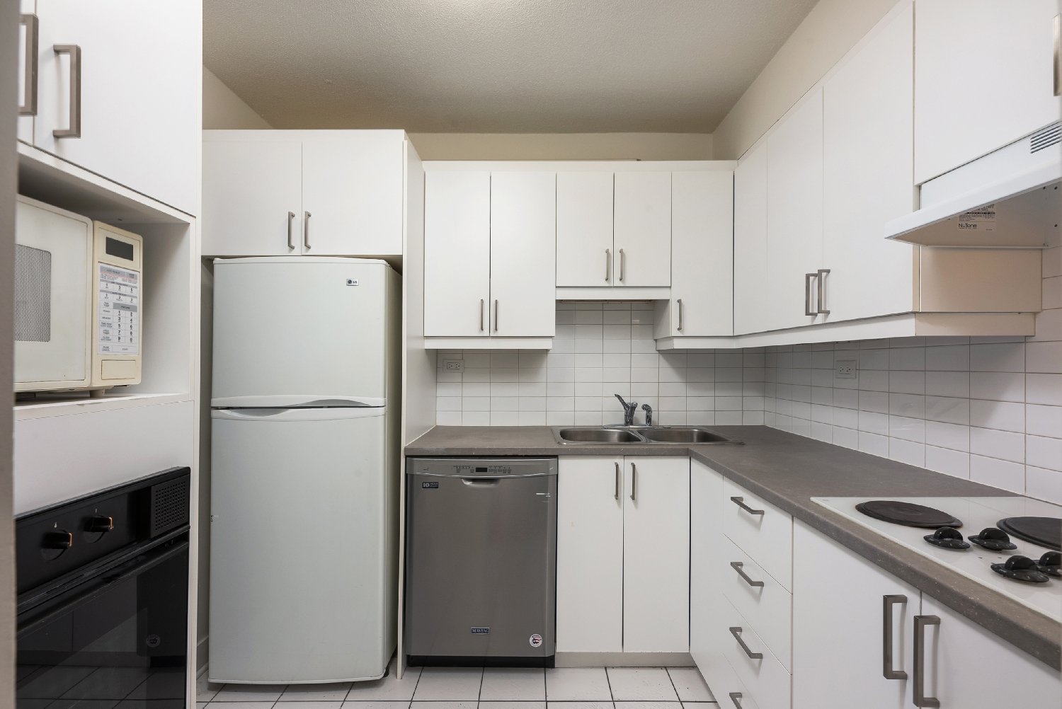 with a modern kitchen equipped with high-end appliances and