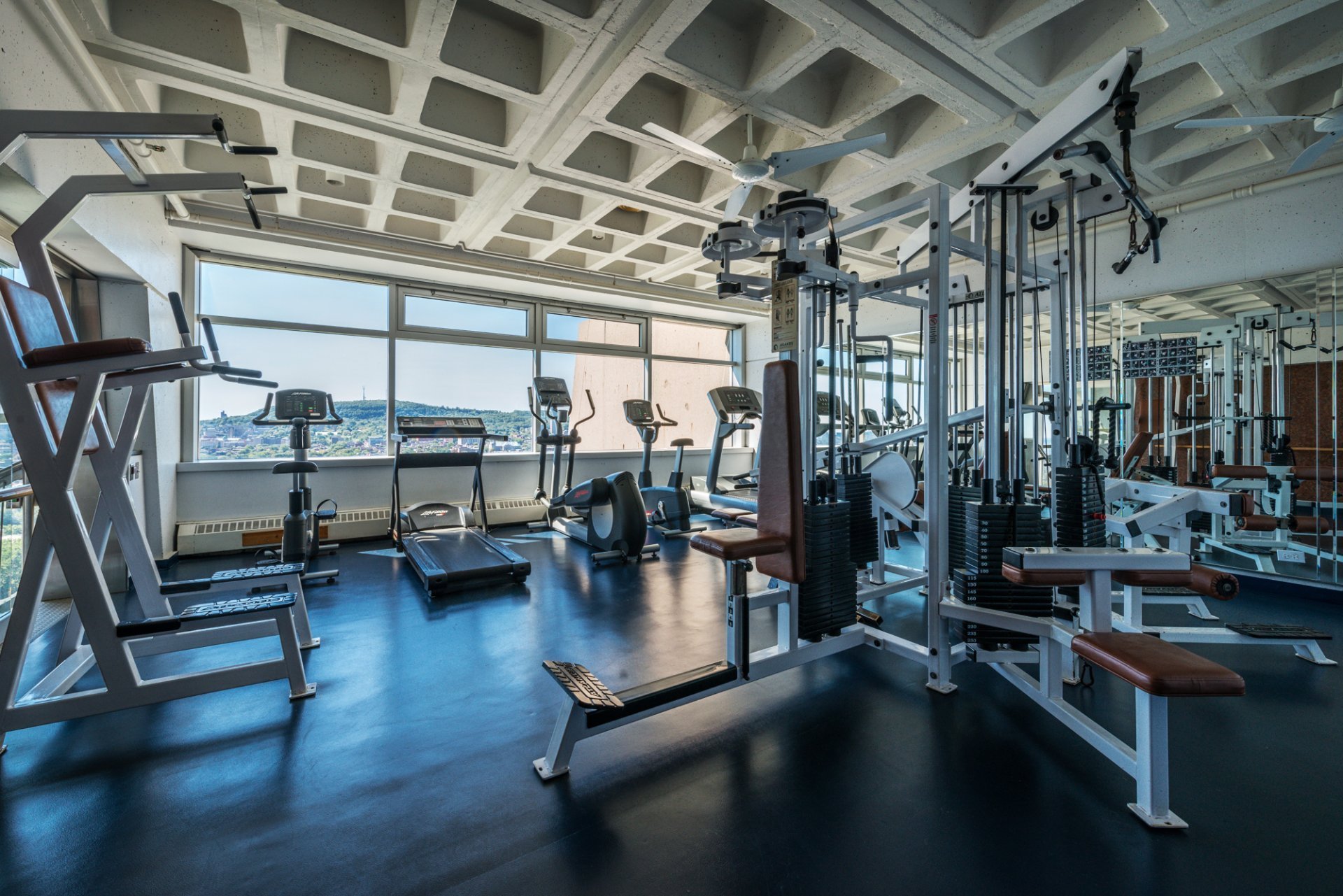 fully equipped gym, both offering sweeping views of